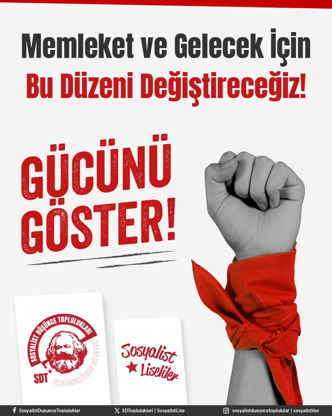 GÜCÜNÜ GÖSTER! İçinde yaşadığımız düzenden, o düzenin yarattığı geleceksizlikten, umutsuzluktan, yoksulluktan, baskı ve hukuksuzluktan hepimiz...